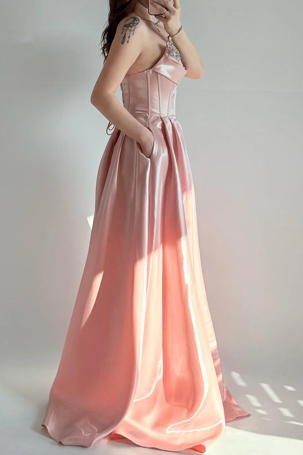 Look effortlessly gorgeous in this pretty prom dress! This captivating pink prom dress is crafted in a beautiful, flowing A-Line silhouette. It features a romantic Off Shoulder design with a chic Scoop Neckline, complemented by a delicately Pleated skirt. This sleeveless gown ensures a comfortable, confident, and utterly unforgettable appearance on your special night, combining sweetness with sophistication.